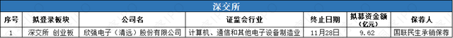 11月25日-12月1日,所科创板有1家公司递交上市申请;深交所从板有1家公司递交上市申请,创业板有1家公司递交上市申请。