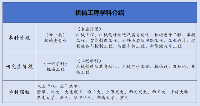 做为一个典型的保守工科类学科,机械工程学科涉及内容普遍,是一个以天然科学和手艺科学为根本,连系出产实践经验,研究机械系统开辟、设想、制制及维修的学科。可见,机械工程学科细分范畴浩繁,又伴跟着手艺的成长不竭衍生新兴范畴。正在研究生阶段, 机械工程学科为工科门类下的一级学科,下设机械制制及其从动化、机械电子工程、机械设想及理论、车辆工程等多个二级学科;正在本科阶段,机械工程所涉及的专业类目称为“机械类专业”,支流专业包罗:机械工程、机械设想制制及其从动化、机械电子工程、车辆工程、智能制制工程、材料成型及节制工程、工业设想、过程配备取节制工程、智能车辆工程、新能源汽车工程等,共10个专业。因为机械工程学科是工学门类的大师族,也是工业的根本,国内分析性院校、理工类院校根基都开设了这一学科的相关专业,学科扶植程度参差不齐。