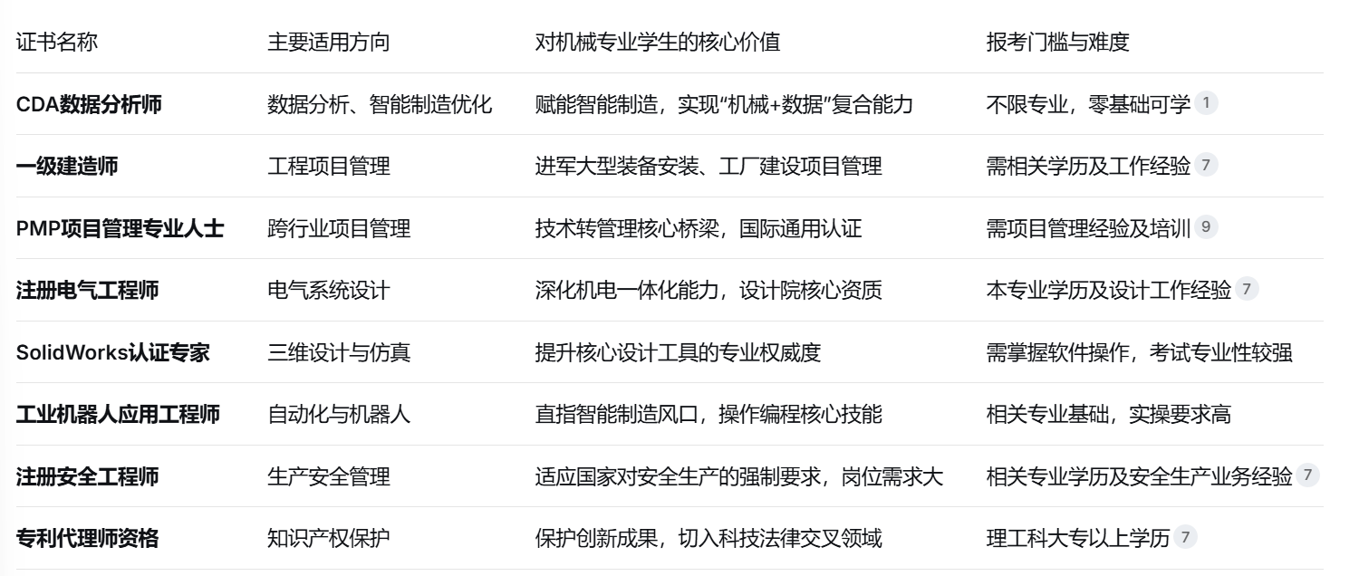 对于大专学历的机械专业学生而言,精选的高价值证书能无效填补学历短板,正在就业市场上成立奇特劣势。